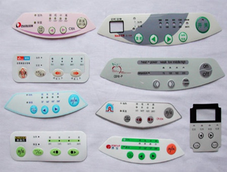 薄膜面板是在PVC、PC、PET等軟性塑膠材料絲印上既定的圖形、文字說明等并配以不同材質的雙面膠制作而成的用于起標識或保護作用的塑膠制品。薄膜面板采用不同的材料,決定了它的價格與性能,采用絲印工藝制作出來的薄膜面板,   大的特點在于: